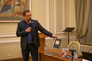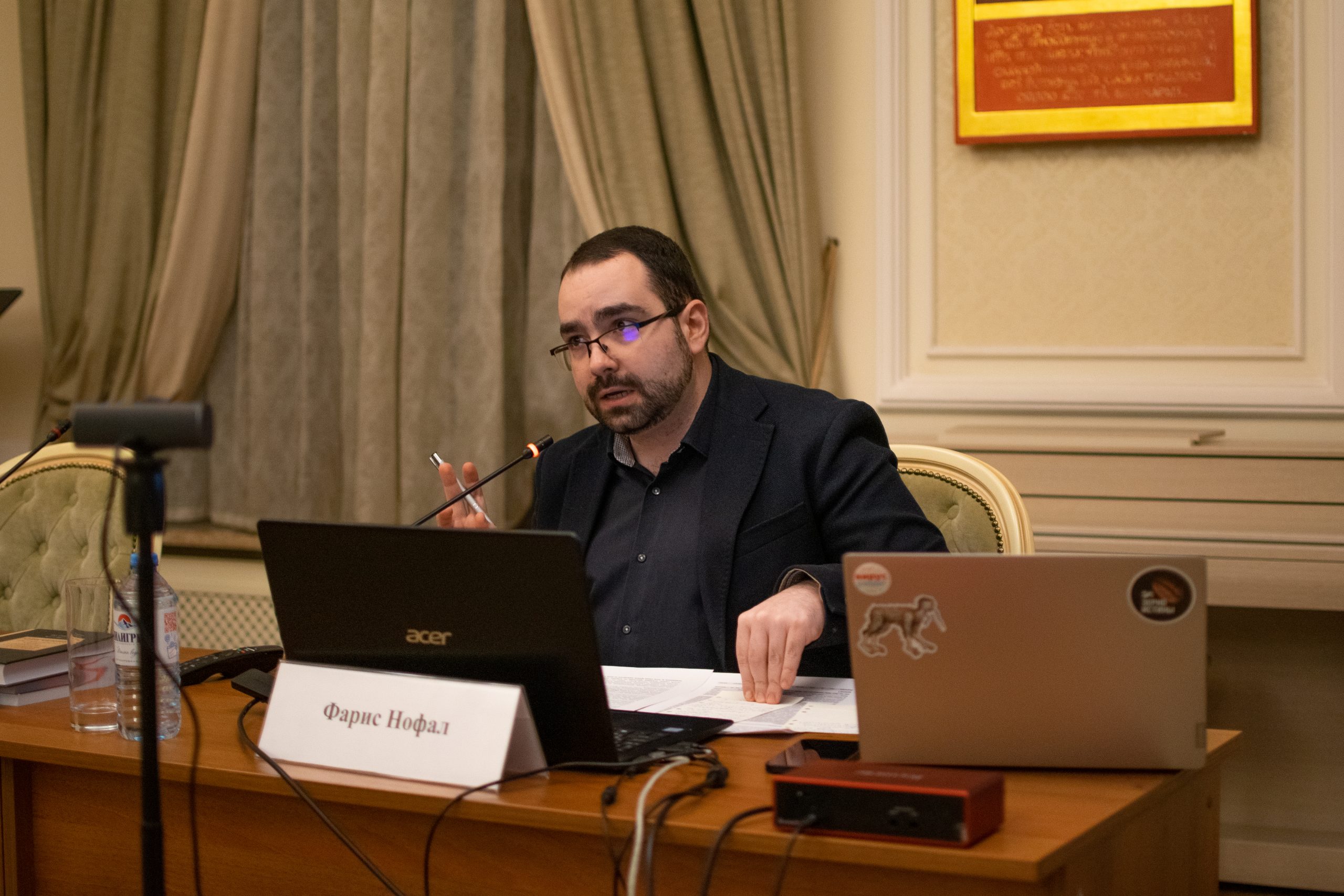 Кульминацией вечера стала презентация романа ливанского писателя Михаила Нуайме «Последний день», изданная впервые на русском языке при поддержке Фонда. Ее провел сам переводчик книги – Фарис Нофал, научный сотрудник сектора философии исламского мира ИФ РАН. Ф. Нофал рассказал об особенностях ливанской литературной сцены начала XX века, о том, как сформировался уникальный стиль ливанского автора и почему роман «Последний день» считается шедевром арабской мистико-реалистической прозы.