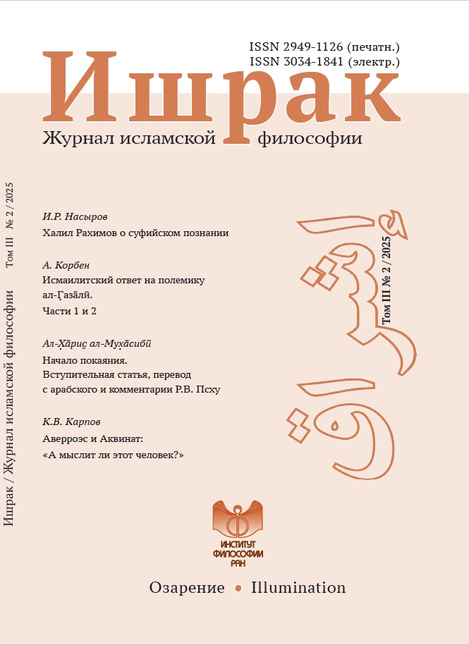 نام روسی اثر: Ишрак. Журнал исламской философии 2025. Т. 3. № 2